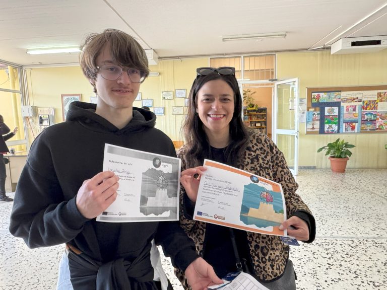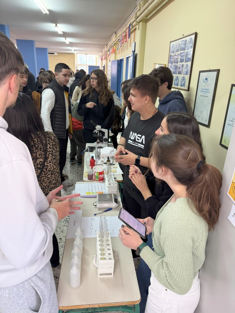 Im Anschluss gingen wir auf Einladung unserer Partnerschule in eine weitere griechische Schule, in welcher wissenschaftliche Experimente von Schülerinnen und Schülern eindrucksvoll vorgestellt und präsentiert wurden. Auf Englisch erklärten sie uns die Funktionsweise ihrer Experimente. Nach einem Rundgang durch die unterschiedlichen Stände, wurde in einer Preisverleihung Schülern für deren Arbeiten Urkunden feierlich übergeben.
