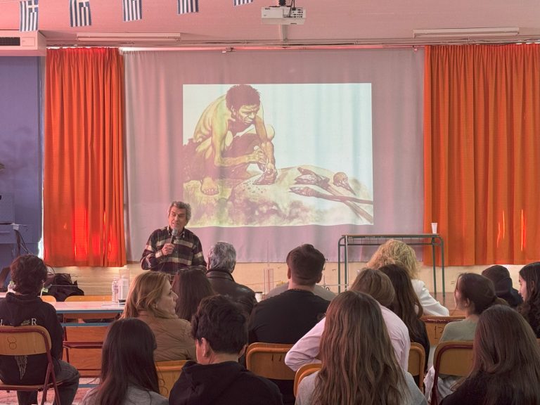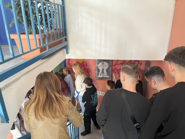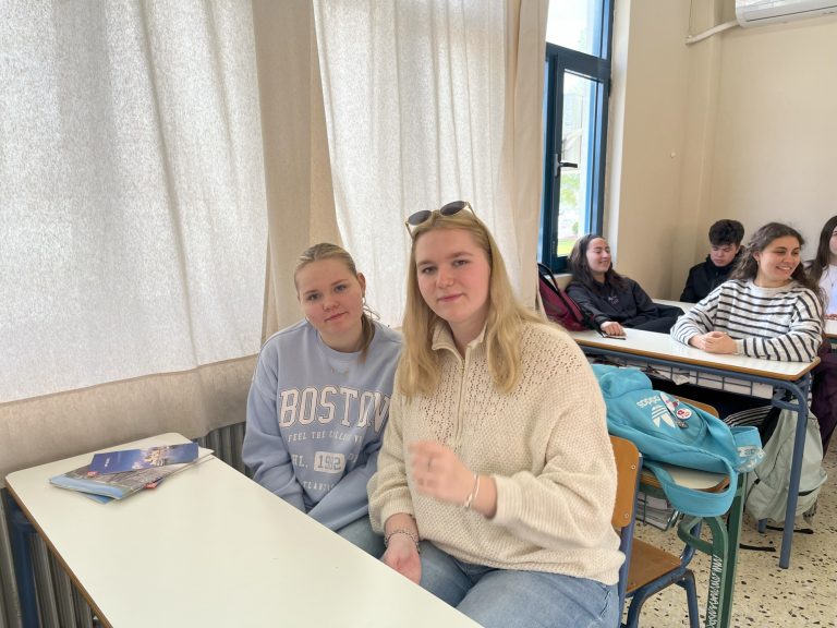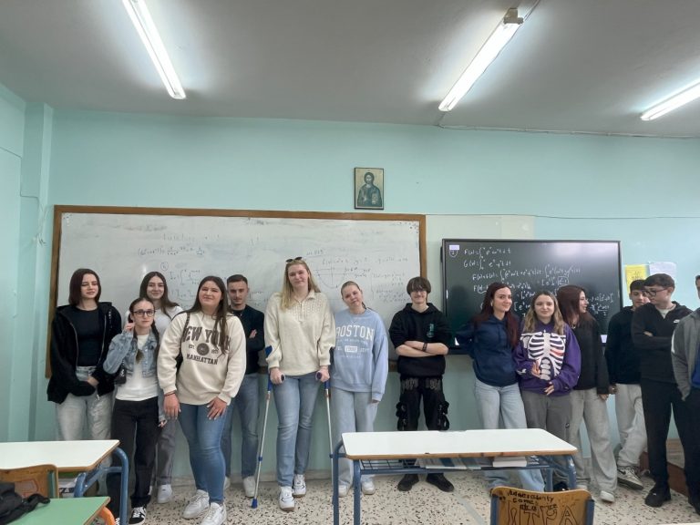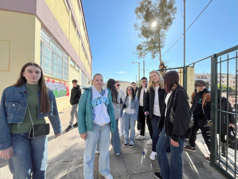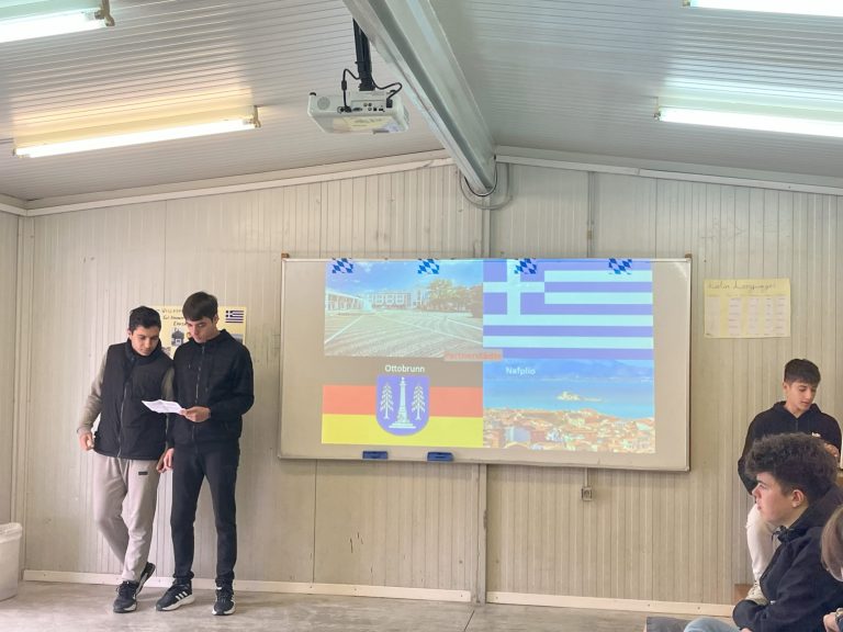 Am dritten Tag unserer Reise wurden wir am Vormittag sehr herzlich in unserer Partnerschule Gel 2 begrüßt. Die Schulleitung, Lehrkräfte und Schülerinnen und Schüler nahmen uns am Eingang in Empfang und führten uns in ein Klassenzimmer, in welchem ein kleines Buffet als auch Fotos des vor zwei Wochen stattgefunden Besuchs in Ottobrunn auf uns warteten. Es folgte eine Schülerpräsentation über die Gemeinsamkeiten der beiden Partnerstädte, ehe wir im Anschluss eine Schulhausführung erhielten. Danach hatten die Schülerinnen und Schüler die Gelegenheit im griechischen Unterricht zu hospitieren. Eine Erfahrung, die ohne des Erasmus+-Ausstausches nicht möglich wäre.