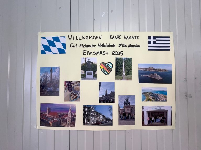 In der Woche vom 05. April bis zum 11. April 2025 reisten 12 Schülerinnen und Schüler gemeinsam mit ihren Lehrkräften der Carl-Steinmeier-Mittelschule sowie Herrn Loderer, Bürgermeister von Ottobrunn, im Rahmen von Erasmus+ in die Ottobrunner Partnerstadt Nauplia. Ziel der Reise war nicht nur der kulturelle und freundschaftliche Austausch der beiden Partnerschulen, sondern auch das vertiefte Kennenlernen europäischer Geschichte sowie Traditionen – und davon bot das abwechslungsreiche Programm reichlich.