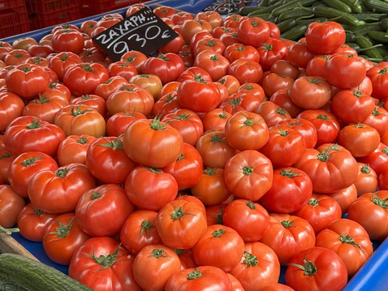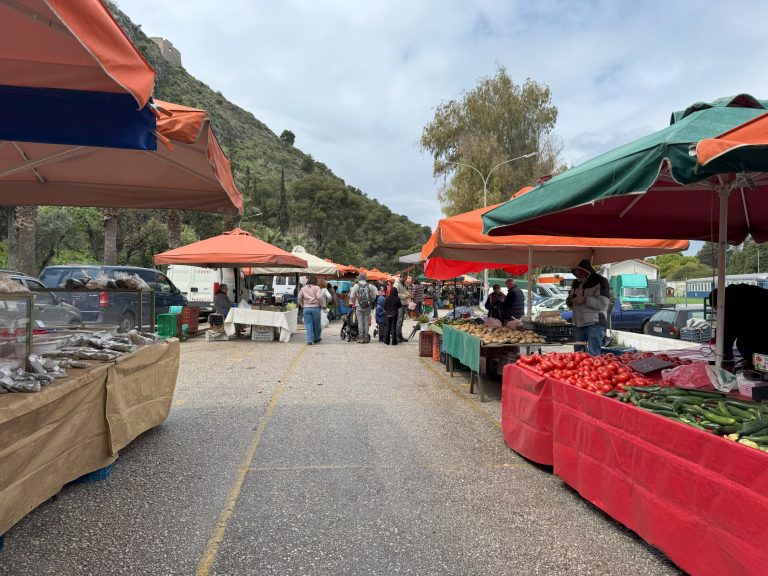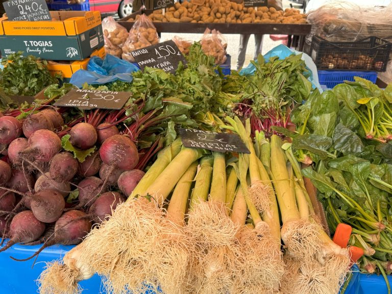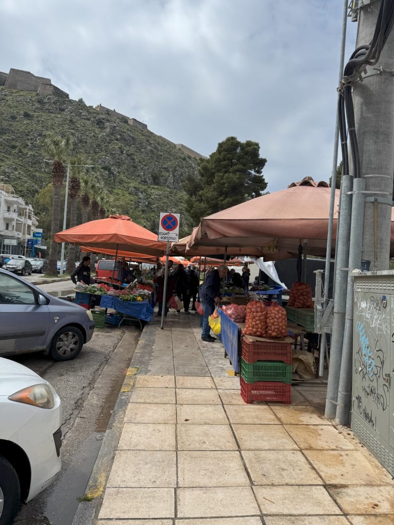 Mittags ließ dann der Regen nach, sodass einer Markerkundung nichts mehr im Weg stand. Ein Rundgang über den typischen griechischen Wochenmarkt ließ uns stauen über die frischen und regionalen Produkte. Der ein oder andere hätte am liebsten zum Kochen angefangen…