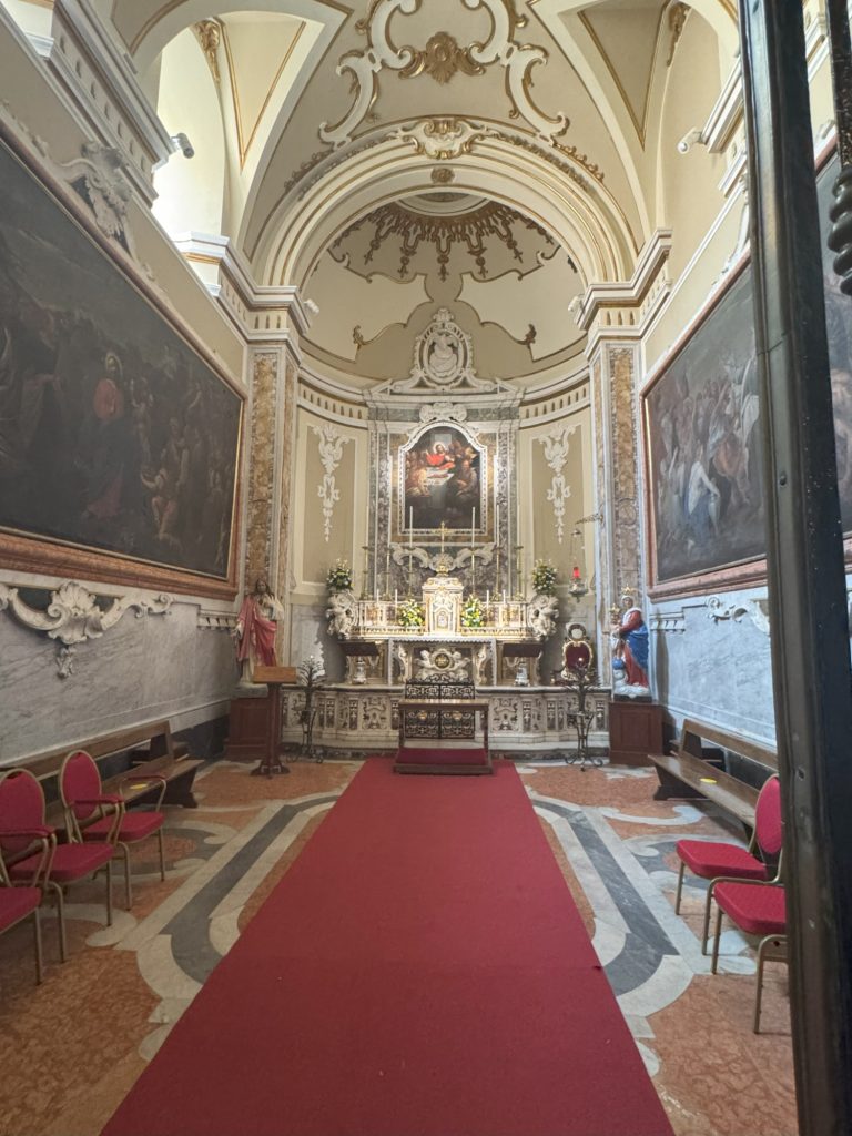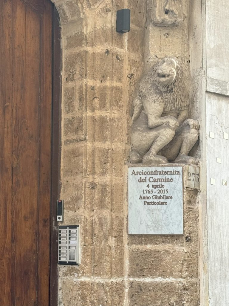 Nach diesem kleinen Schock am frühen Morgen, frühstückten wir gemütlich im Hotel, ehe wir aufbrachen, um einen kleinen Sparziergang durch die Altstadt zu unternehmen, vorbei an der Kirche des Heiligen San Cataldo. Da am Nachmittag die Prozession stattfinden sollte, waren bereits am Morgen viele Wege abgesperrt.