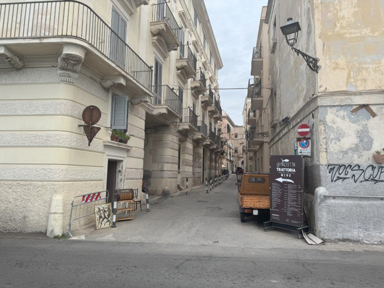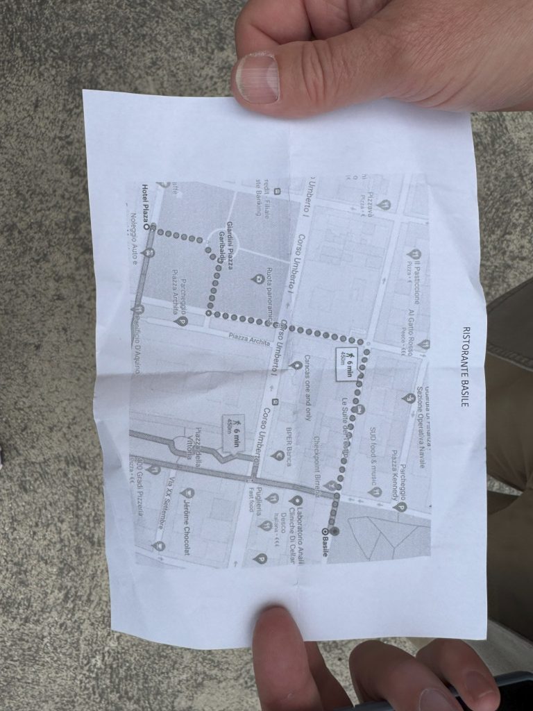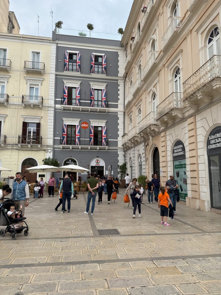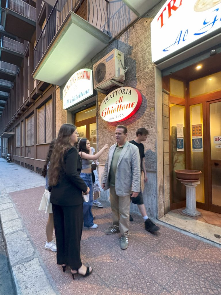 Nach einem gemeinsamen Mittagessen mit Pizza und Pasta trafen wir uns mit unserer zweiten Schule in Taranto. Da es leider regnete, musste die geplante Stadtführung, die von italienischen Schülerinnen und Schülern extra für uns organisiert wurde, leider ausfallen. Aber trotz des leichten Regens, ließen wir uns nicht davon abhalten, in die Altstadt zu gehen. Dabei durfte eine Shoppingtour mit Souvenirs für zu Hause natürlich nicht fehlen.