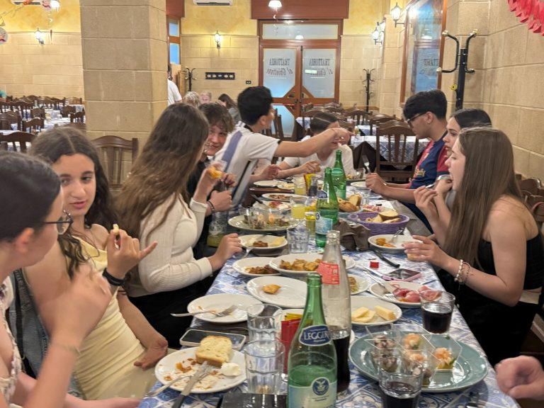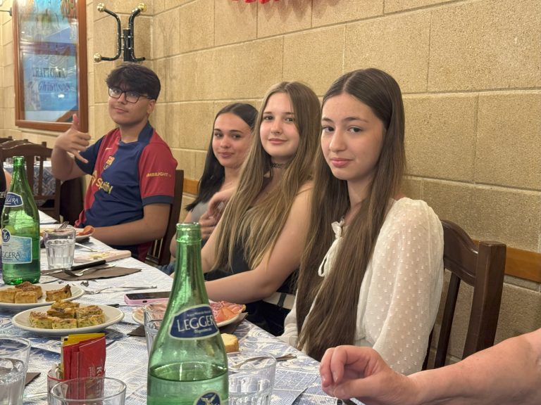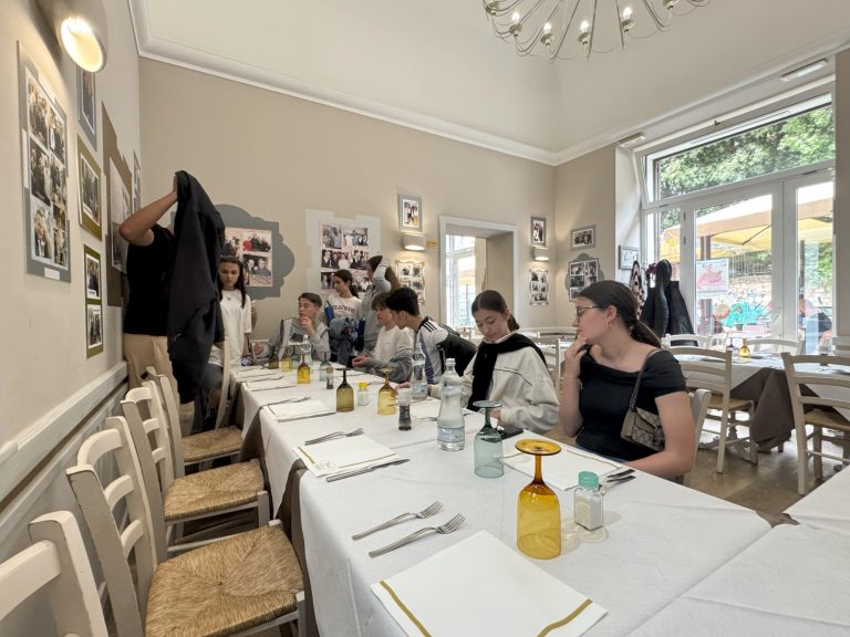 Zum gemeinsamen Abendessen trafen wir uns dann mit italienischen Schülerinnen und Schülern in einem Restaurant und fanden auf Anhieb Gemeinsamkeiten, sodass im Laufe des Abends auch der ein oder andere Instagram-Kanal ausgetauscht wurde. Es wurde viel gelacht und der kulturelle sowie der europäische Austausch weiter vertieft.