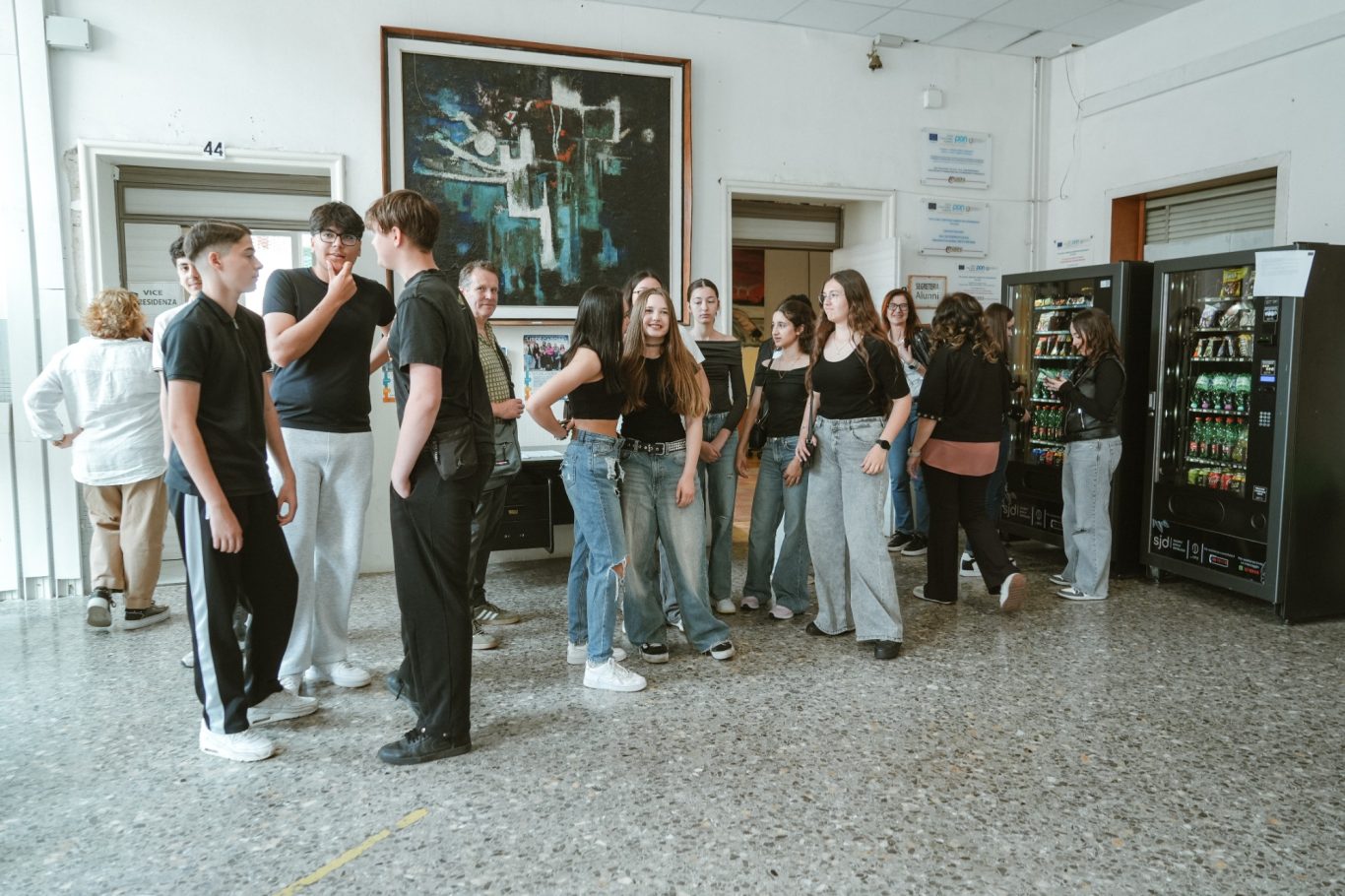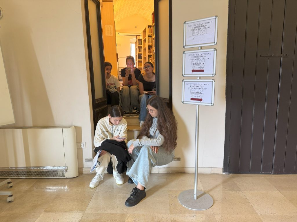 Am Dienstag wurden wir sehr herzlich von der Schulgemeinschaft unserer Partnerschule in Italien empfangen. Nach einer offiziellen Begrüßung erhielten wir eine Führung durch das Schulgebäude und konnten anschließend am Unterricht teilnehmen. Wir gewannen spannende Einblicke in das italienische Schulsystem und erlebten den Schulalltag in einer italienischen Schule hautnah. Dabei lernten wir einen jungen Lehrer kennen, der vor einigen Jahren als Schüler unserer Schule im Rahmen von Erasmus besuchte. Auch der interkulturelle Austausch mit den italienischen Schülerinnen und Schüler war bereichern für beide Seite und die Kommunikation klappte auf Anhieb.