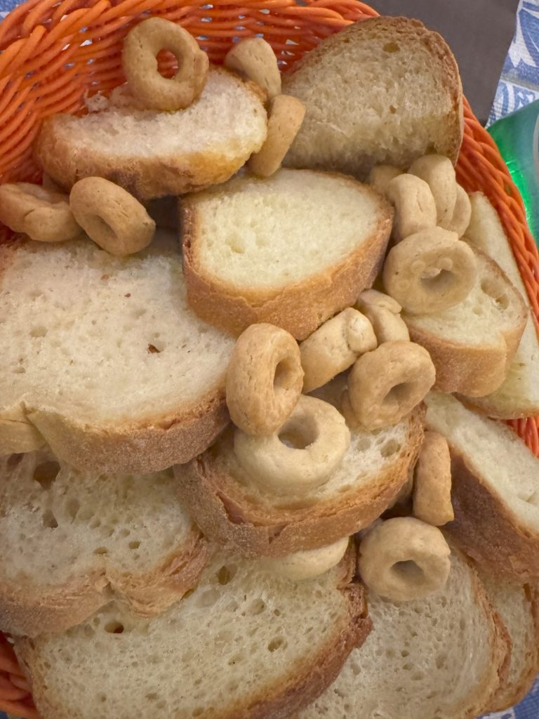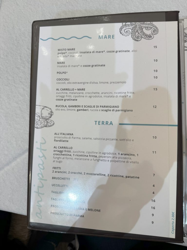 Am Abend ging es dann für alle gemeinsam in eine echte italienische Trattoria zum Essen. Dort bestellten wir italienische Köstlichkeiten aus der Region, von Schinken über Meeresfrüchte, Käse, unterschiedliche Pastagerichte bis hin zu Brot in Ringform. Echt lecker:-)