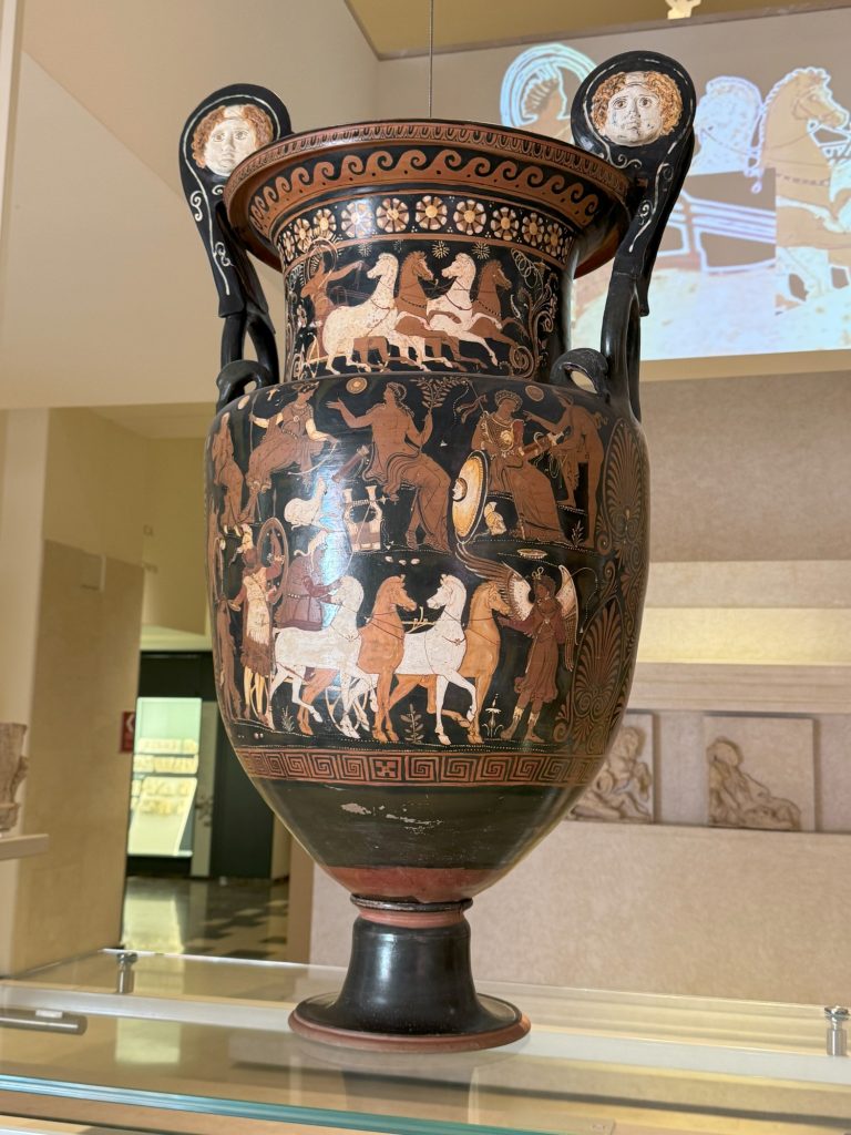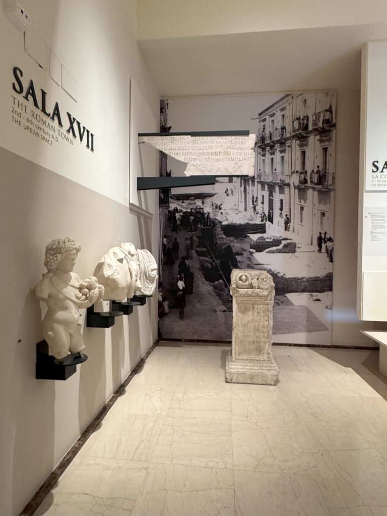 Am Nachmittag trafen wir uns dann mit italienischen Schülerinnen und Schülern und gingen gemeinsam im Museum "MArTA" auf Entdeckungstour. Das Museum zählt zu den bedeutendsten Museen Süditaliens und befindet sich im ehemaligen Kloster San Pasquale in der "Città Nuova" von Taranto. Die Sammlung umfasst Artefakte von der Vorgeschichte bis ins Mittelalter und bietet dabei einen umfassenden Einblick in die Geschichte Apuliens und der Magna Graecia. Wir waren besonders von den gut erhaltenden Ausstellungsstücken beeindruckt, da diese schon mehrere Jahrhunderte alt sind.