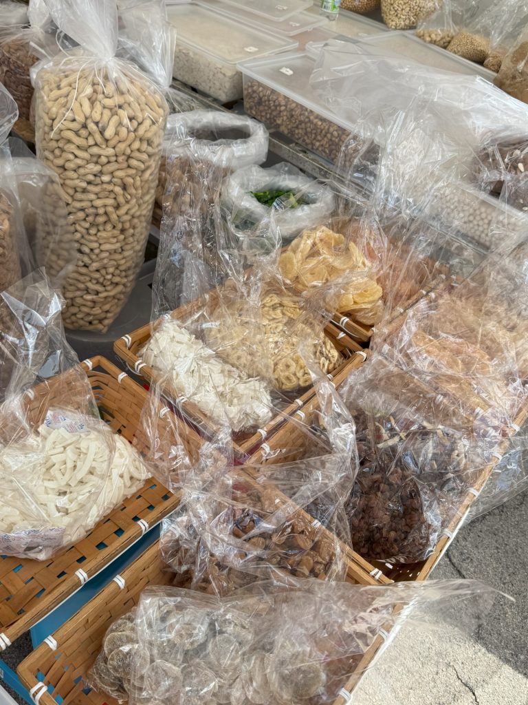 Im Anschluss fuhren wir mit dem Bus zum Wochenmarkt in Taranto. Schon zu Beginn des Marktes konnte man sehen, dass hier neben Obst- und Gemüse auch Kleidung und Haushaltsgegenstände angeboten werden.