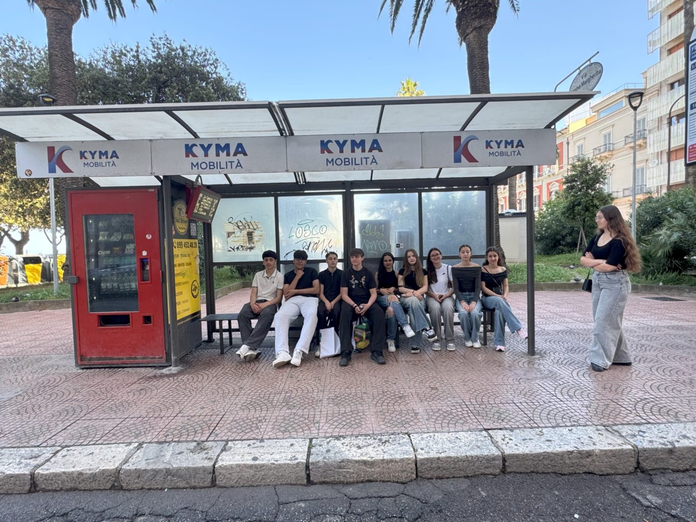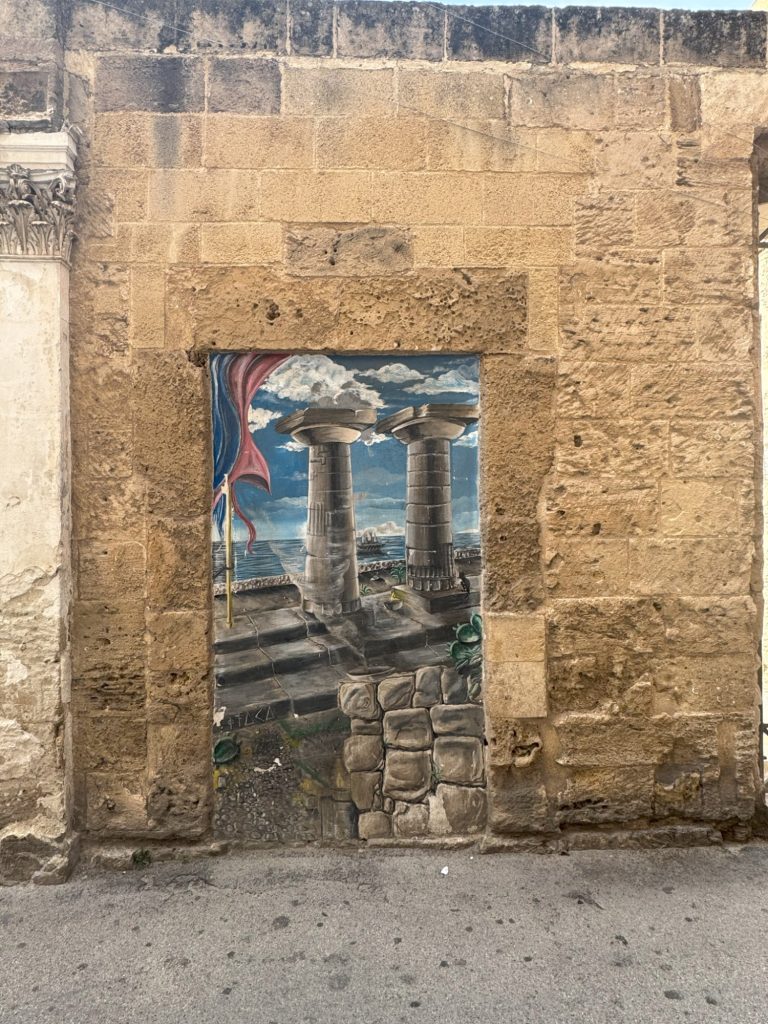 Am Nachmittag stand dann ein besonderes Highlight auf dem Programm: Gemeinsam mit italienischen Schülerinnen und Schülern aus zwei Klassen starteten wir zu einem Actionbound quer durch Taranto, um so die Stadt auf spielerische Art kennen zu lernen und fotografisch in Szene zu setzen. Es mussten unterschiedliche Aufgaben wie z. B. die künstlerisch gestalteten Wände der Stadt in unseren Fotos stilvoll zu integrieren, gemeistert werden.
