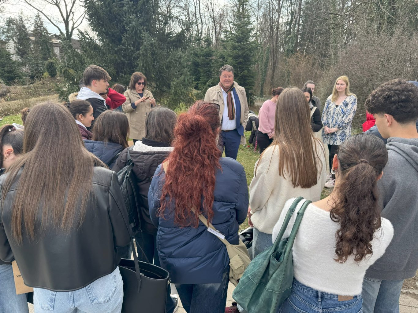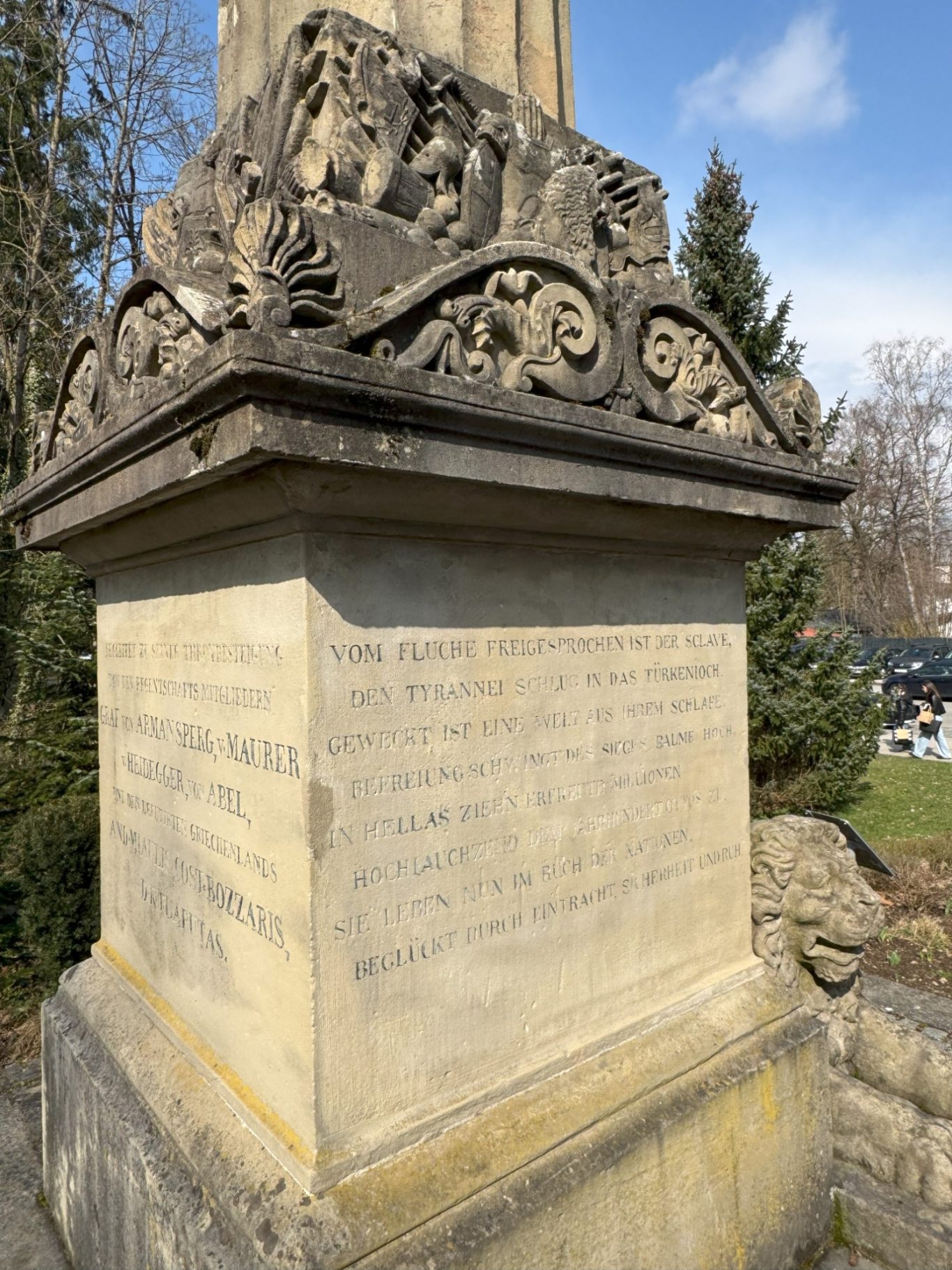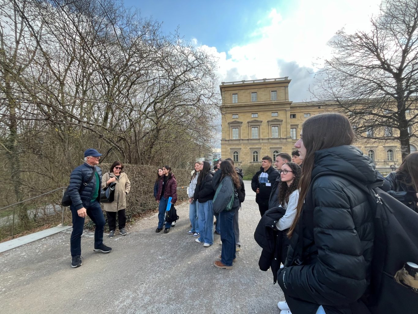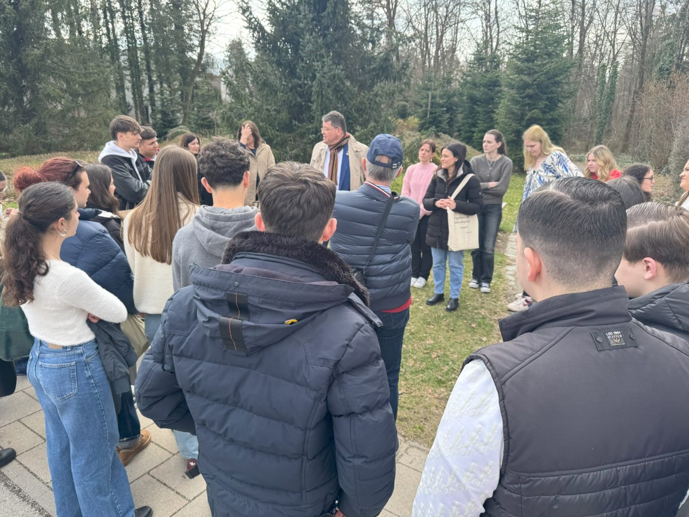 Und genau an diesem geschichtsträchtigen Ort trafen sich am Dienstag Schülerinnen und Schüler der beiden Partnerschulen, um gemeinsam mehr über die Ottosäule zu erfahren. Hr. Loderer, der erste Bürgermeister der Gemeinde Ottobrunn, selbst erzählte den wissbegierigen Schülerinnen und Schüler Interessantes über die Ottosäule und deren Inschriften.