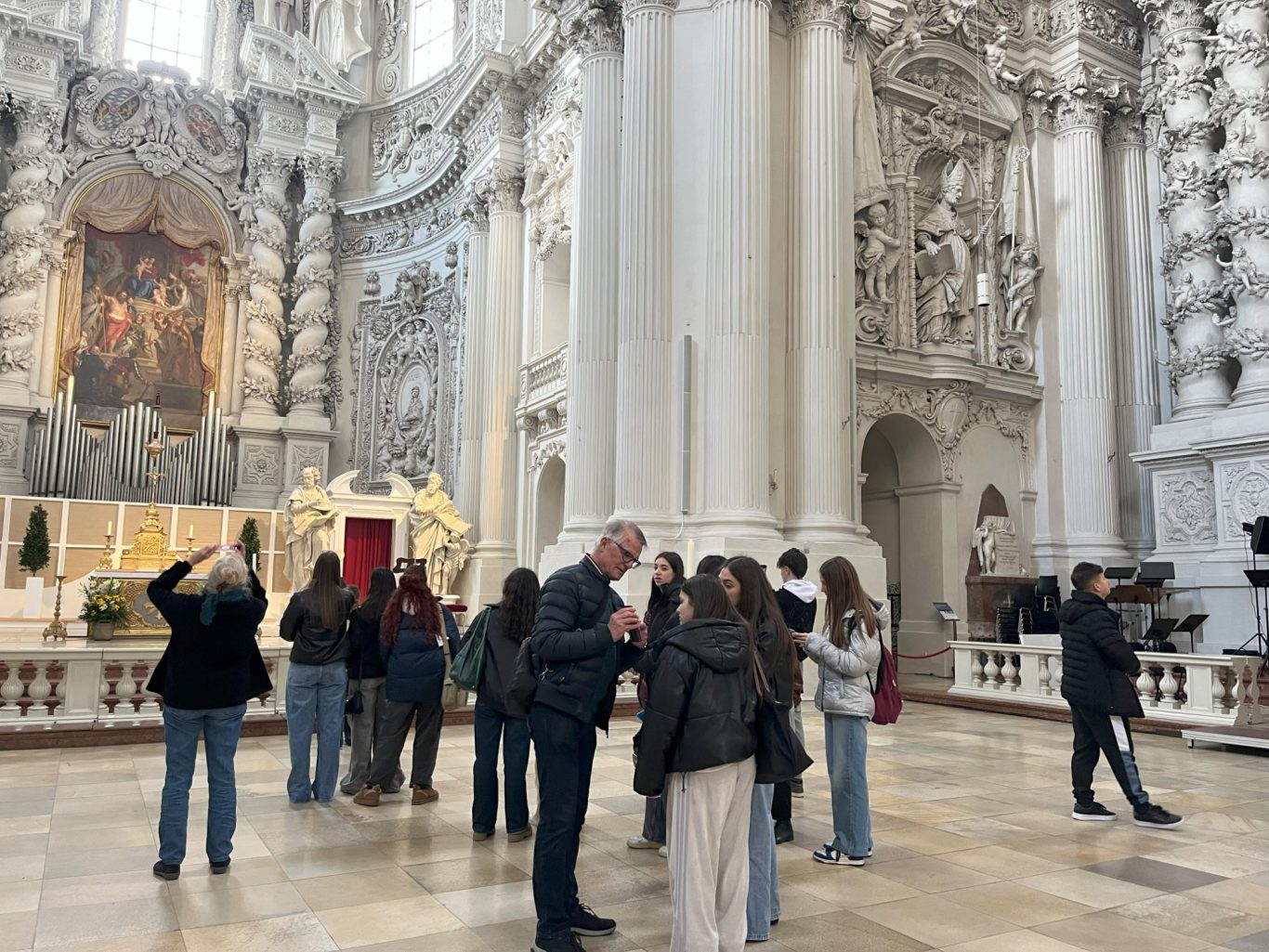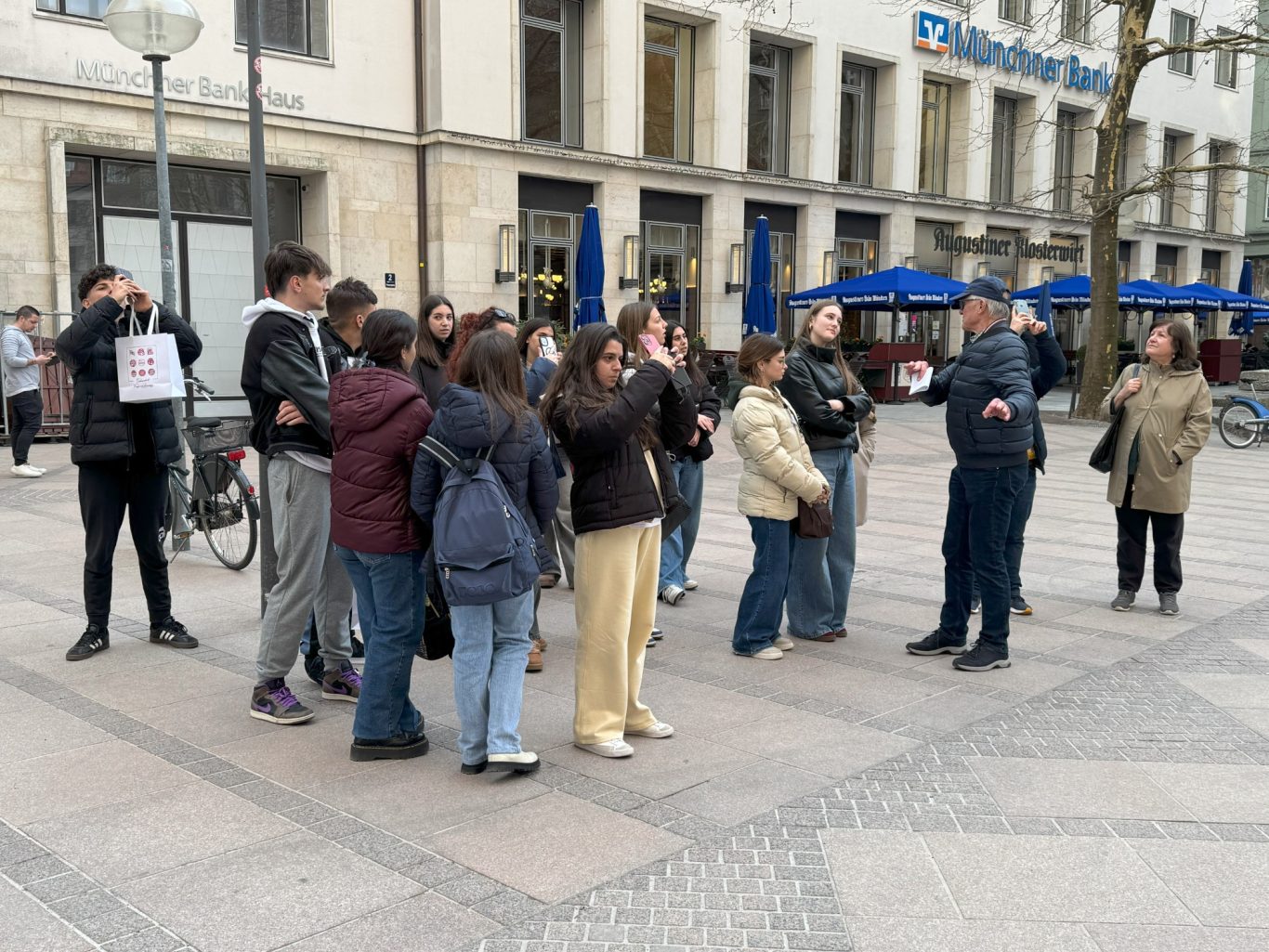 Am Nachmittag stand dann eine Stadtbesichtigung mit Führung in der bayerischen Landeshauptstadt auf dem Programm. Dankenswerterweise übernahm Hr. Paul vom Freundeskreis der Partnergemeinden Ottobrunn, die Führung zu interesanten und historischen Orten in München. So erfuhren unsere griechischen Gäste viel über die Wittelsbacher, insbesondere Ludwig I. und seinem Sohn Otto, der spätere König Otto I. von Griechenland als auch über die Geschichte Münchens. Die Tour führte über die Residenz, zum Odeonsplatz, in die Theatinerkirche, ins Hofbräuhaus, über den Marienplatz mit Glockenspiel und schließlich in die Frauenkirche. Dabei wurden an der ein oder anderen Stelle interessante Fakten und Anekdoten berichtet, die auch für unsere Schüler Neues beinhalteten. Ein Abendessen in einem "echten" Münchner Restaurant rundete den Tag ab. Vielen Dank an Herrn Paul für diese kurzweilige Stadtführung.