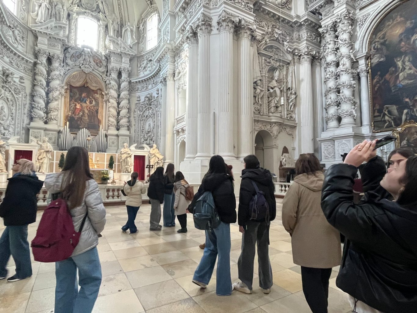 Der erste Zwischenstopp führte uns zur Walhalla in Donaustauf. Diese wurde von Ludwig I. König von Bayern in Auftrag gegeben, 1830 erfolgte die Grundsteinlegung und 1842 die Eröffnung. Architekt dieser einzigartigen Ruhm- und Ehrenhalle war Leo von Klenze. Im Inneren der Ruhmeshalle finden sich viele Büsten bedeutender Persönlichkeiten, wie Johann Sebastian Bach, Richard Strauss oder auch Sophie Scholl. Auch eine überlebensgroße Statue von Ludwig I. König von Bayern kann bestaunt werden. Aber nicht nur die Walhalla selbst, sondern auch der atemberaubende Ausblick vom Bräuberg auf die Donau und die umliegenden Landschaft ist einen Ausflug wert. Bei strahlendem Sonnenschein genossen wir die Aussicht.